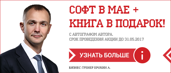 Компания РосБизнесСофт, ведущий производитель программного обеспечения для малого и среднего бизнеса, совместно с практикующим бизнес-тренером Александром Ерохиным проводят совместную акцию «Софт в мае + книга в подарок». Если Ваша компания хочет оптимизировать работу отдела продаж и вывести продажи на новый уровень, то это акция для Вас.