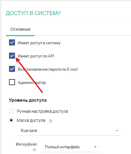 Для того, чтобы пользователь имел доступ по API, в т.ч. для подключения через мобильное приложение, ему нужно поставить соответствующую галочку в «Настройках».