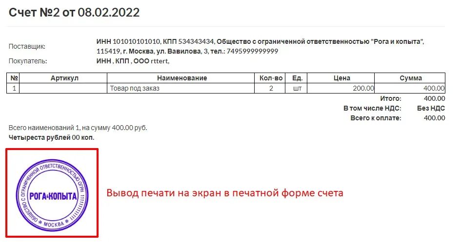 {/ALERT}Один и тот же блок можно вызывать несколько раз. Например, для отображения табличной части документа Счет в печатной форме: