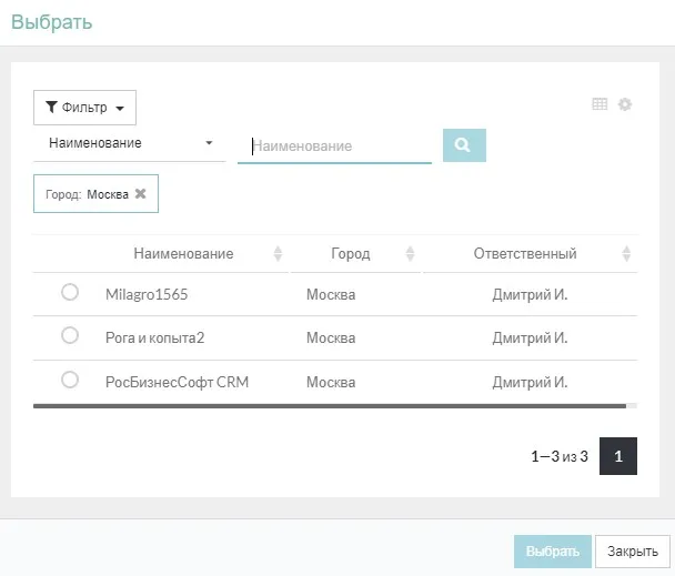 Например, в модуле “Счет” можно выбрать “Контрагента”.