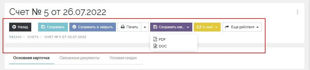 Пример: Добавить кнопку «Создать Счет» в кнопку “Еще действия”