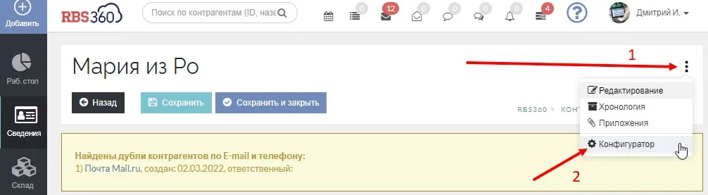 Важно: Только пользователи с правами «Администратор» имеют доступ в раздел «Конфигуратор».