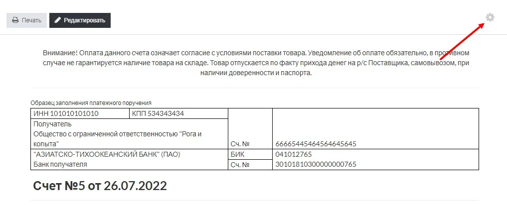 Статус активности модуля можно посмотреть в разделе «Настройки» — «Счет и оплата».