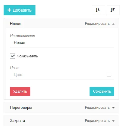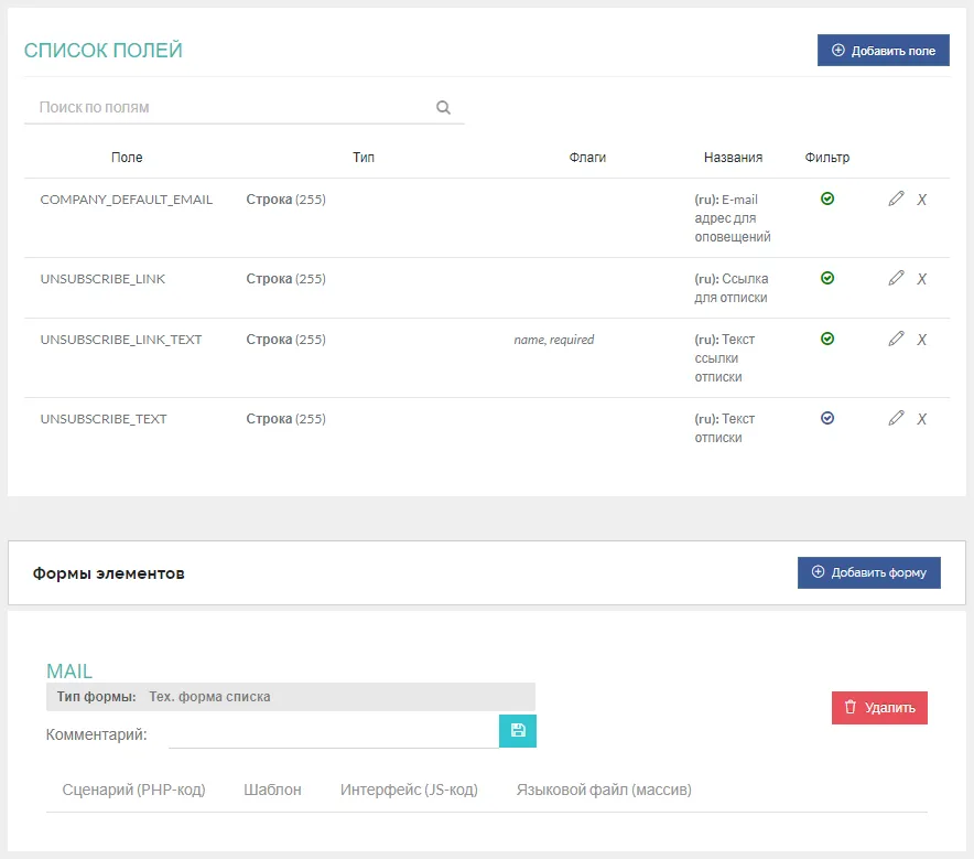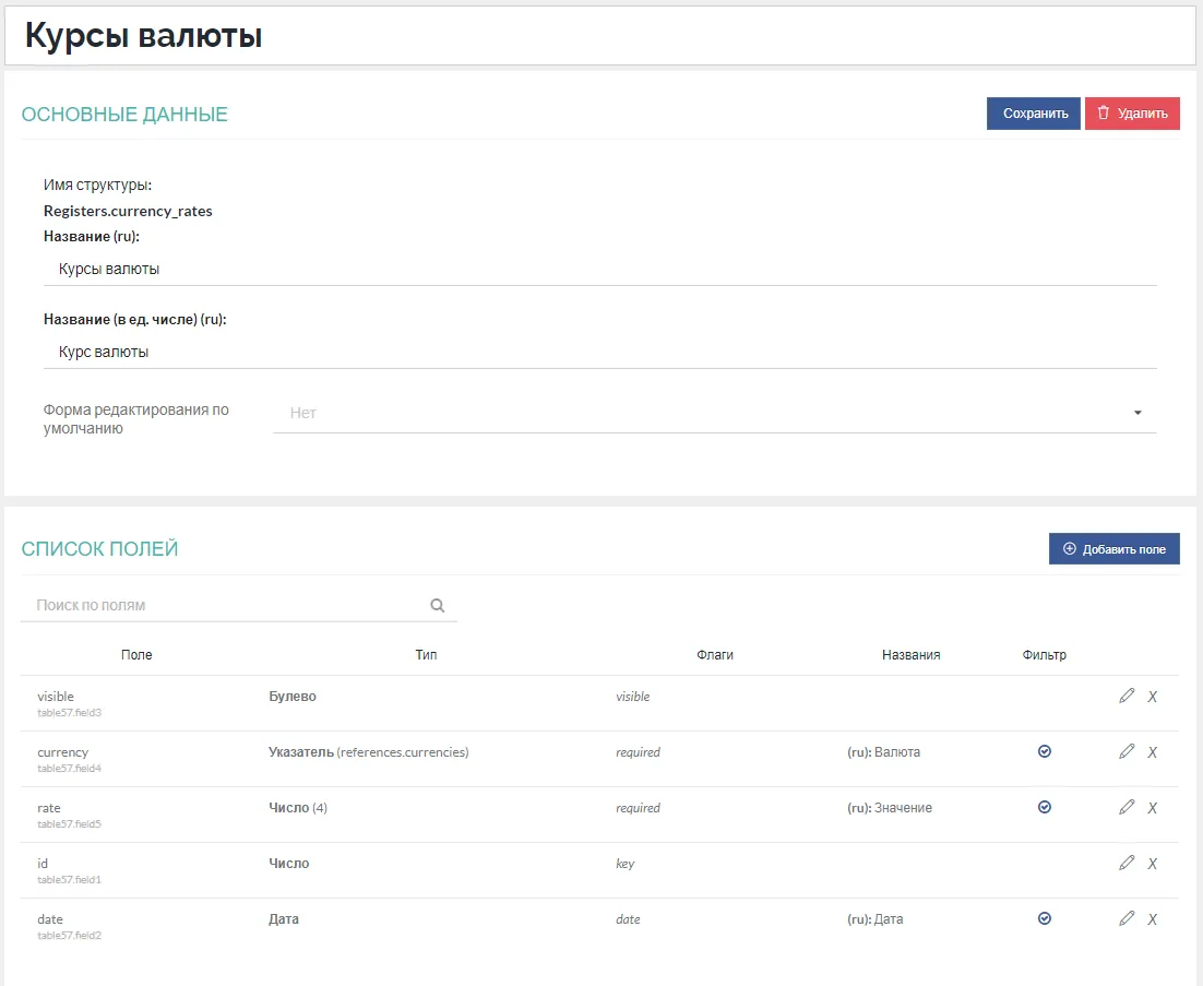 Формы редактирования и списка для таких объектов создаются автоматически. Объект сразу становится доступным в меню: «Настройки» — «Перечисления».