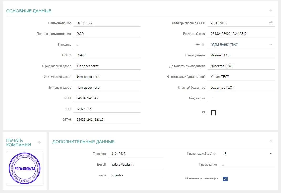 Ниже представлена картинка иллюстрирующая «Тех. форму» (техническая форма) редактирования справочника «Организации».