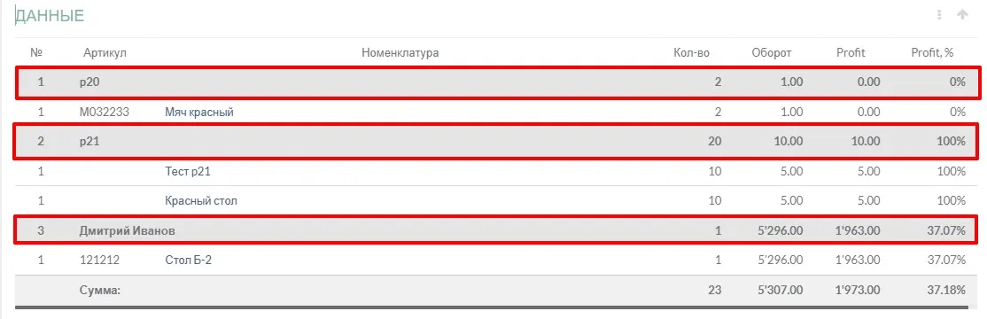 Для суммирования используется функция sumData(). Она добавляет строку в конец отчёта.