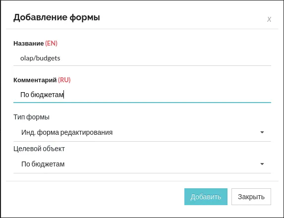 Созданный отчет будет отображаться в разделе “Отчеты” (/olap/) и будет доступен по ссылке /olap/budgets/.