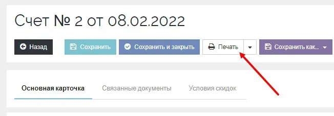 “Печатная форма” используется для печатного представления «Объекта». Печатная форма чаще всего бывает у «Документов», например у “Счета”, “Договоры”, “Ком. предложения”, «Отгрузки».