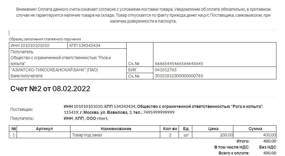 Также можно легко получать значение полей из внутренних объектов. Например, выведем значение полей «ИНН» и «КПП» объекта «Юридического лица»: