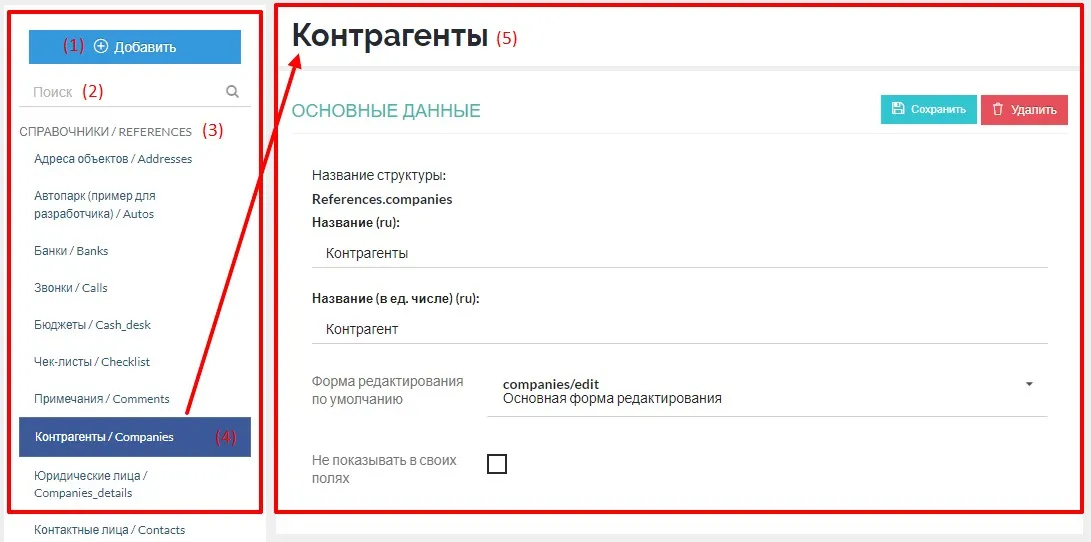 - Название текущего активного (открытого) «Объекта» на русском языке. Структура «Объекта».