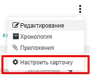 «Настроить карточку» — ссылка на «Конфигуратор» системы для гибкой настройки карточки объекта («Контрагента»). Данный пункт доступен только «Администратору» при активном флаге в конфигурационной файле системы или активации опции в сервисе RBS360. По вопросам доступа к «Конфигуратору» просим обращаться в нашу тех. поддержку.