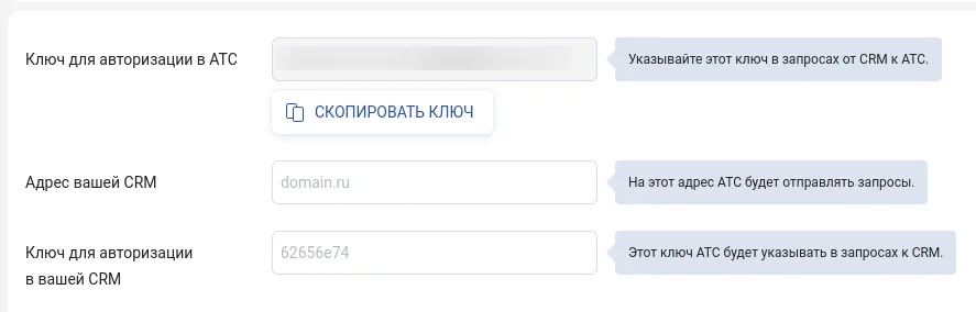 4.3 Ключ для авторизации в вашей CRM (любое значение)