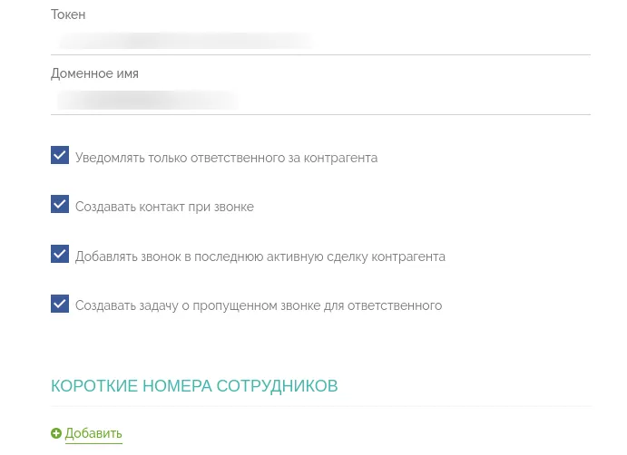 5.1 В поле «Токен» вставить ключ для авторизации в АТС