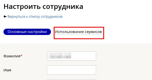 1.3.5. Вернитесь в карточку сотрудника. Переходите на вкладку «Использование сервисов».