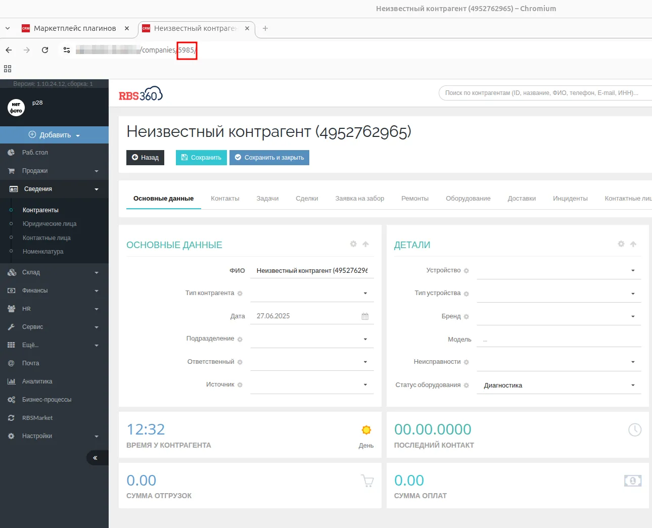 - Если контрагент не найден по номеру, то задача создастся первому сотруднику указанному в настройках плагина.