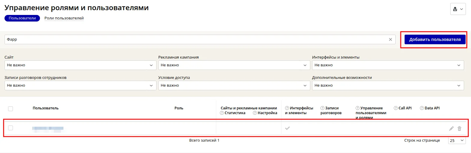 1.2.2. Добавьте нового пользователя либо выберите уже имеющегося.