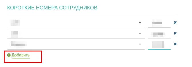 1.3.2. Заполните карточку сотрудника. Укажите внутренний номер и в блоке Телефоны добавьте SIP-линию по кнопке «Добавить номер».