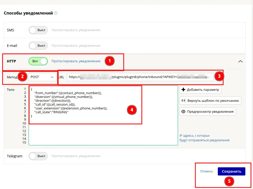 3.2. Шаблоны уведомлений имеют общие настройки обязательные для корректной работы интеграции.