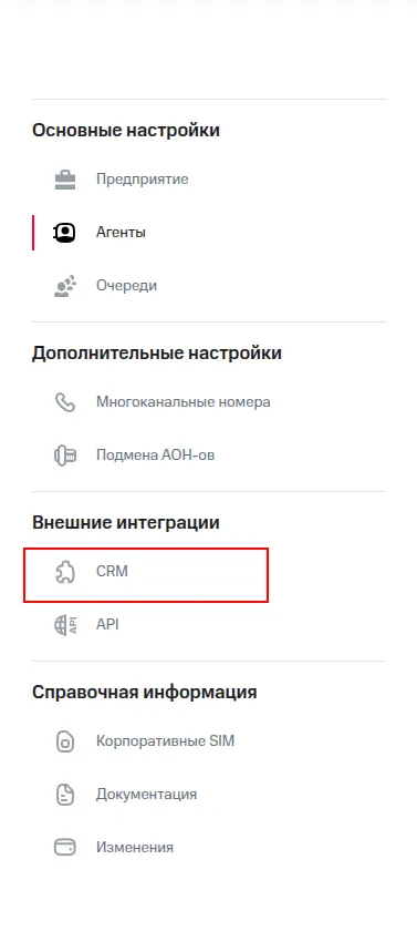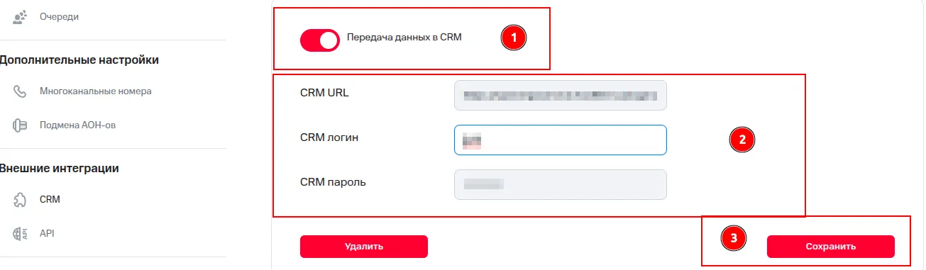 - CRM URL — вставить « Адрес внешней системы (вставить в поле в ЛК МТС)»