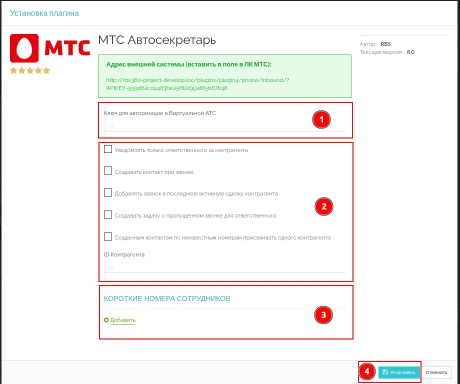 - Для корректной работы интеграции МТС Автосекретарь с системой RBS360 необходимо: