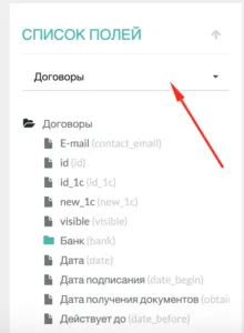 В «Списке поле» выбираем объект, который у нас будет связан с данным шаблоном. Для типа шаблона «Договор» выбираем в списке «Договоры».