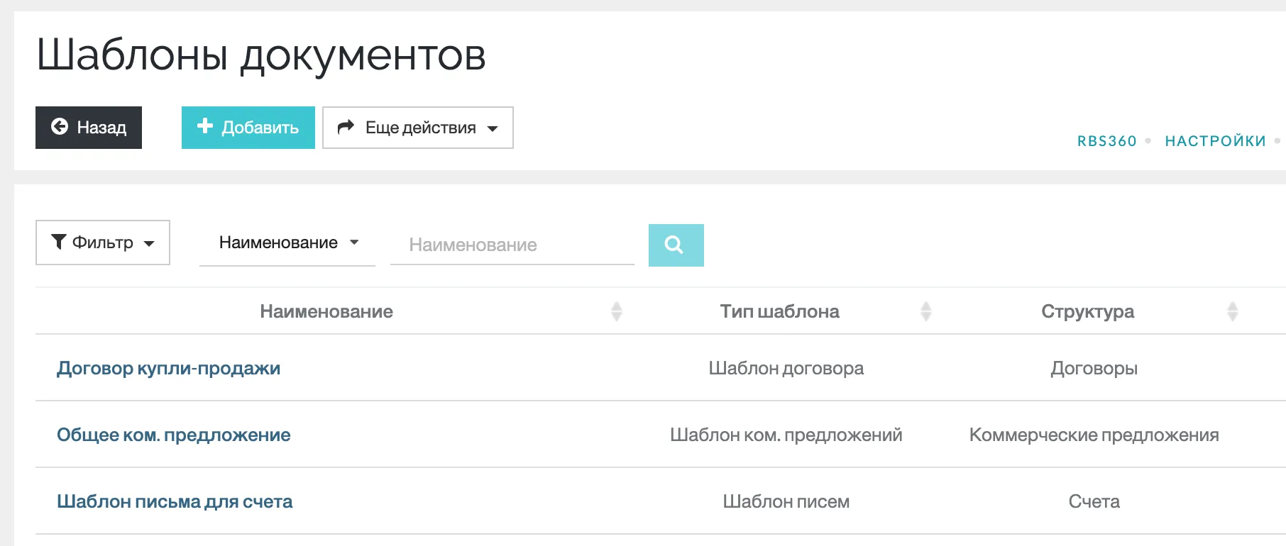 Для настройки шаблонов документов необходимо перейти в «Настройки» — «Справочники» — «Шаблоны документов»