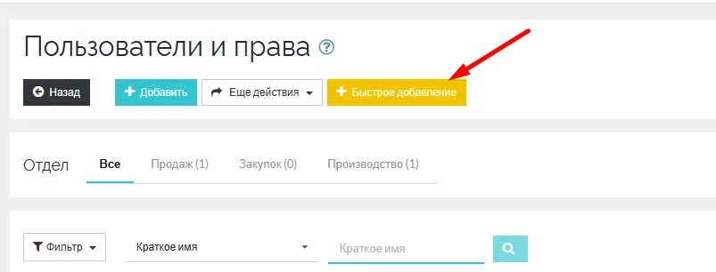 В «Настройках» — «Пользователи и права» нажать кнопку “Быстрое добавление”: