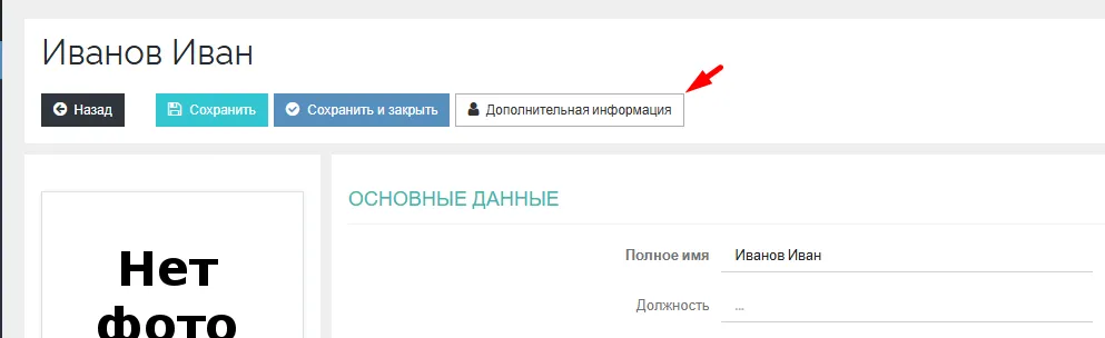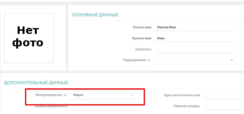 Обратите внимание: на поле «Мой руководитель», находящееся вкладке «Дополнительная информация». По данному полю регулируется доступ к «Задачам» сотрудника.