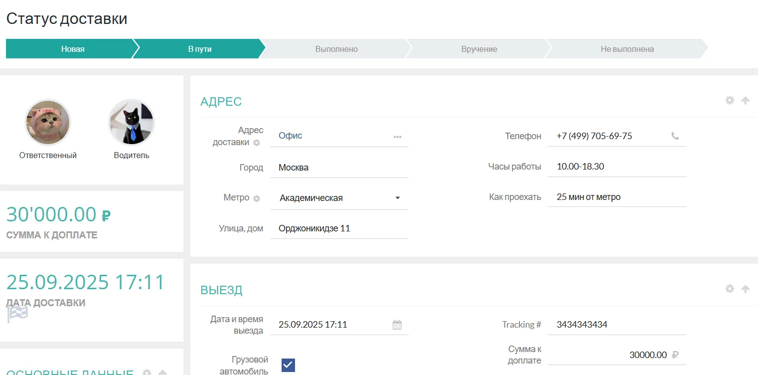 Модуль «Доставки» превращает разрозненные процессы в единый управляемый workflow, обеспечивая своевременное и контролируемое выполнение обязательств перед клиентом.