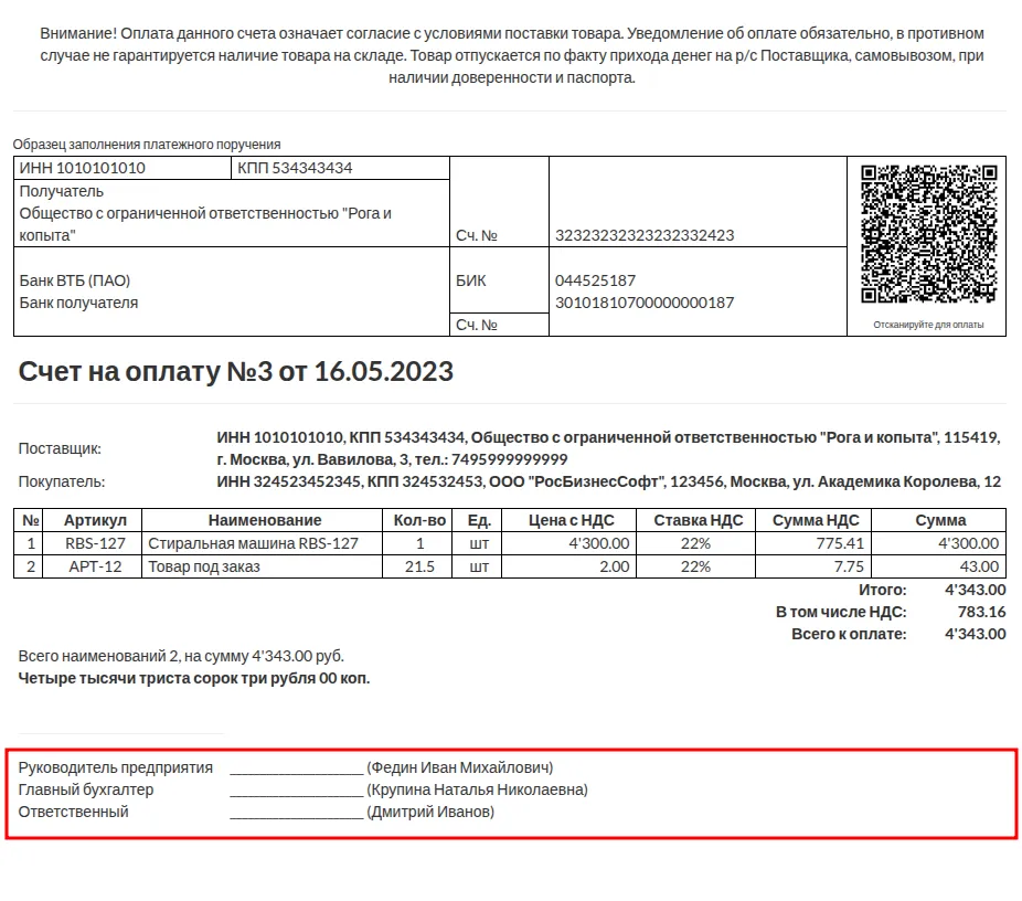Важно: В поле «Печать организации» загружается картинка, которая используется в печатной форме «Счета». Необходимо загружать изображение полностью содержащую область печати.