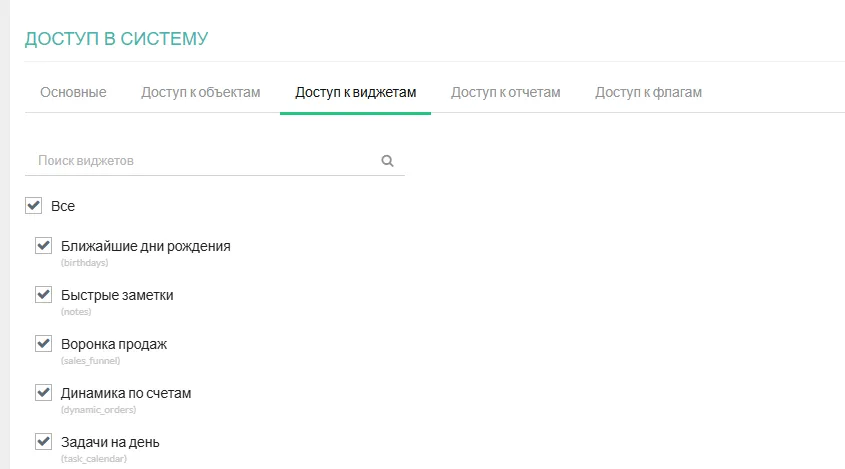 Виджеты – это объекты на Рабочем столе. Если установлен чек-бокс, то сотрудник видит данный виджет