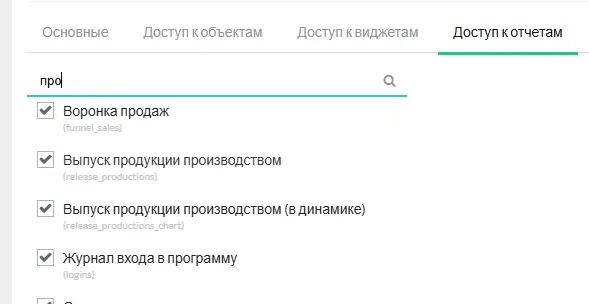 Если установлен чек-бокс, то сотрудник видит данный отчет (имеет доступ).