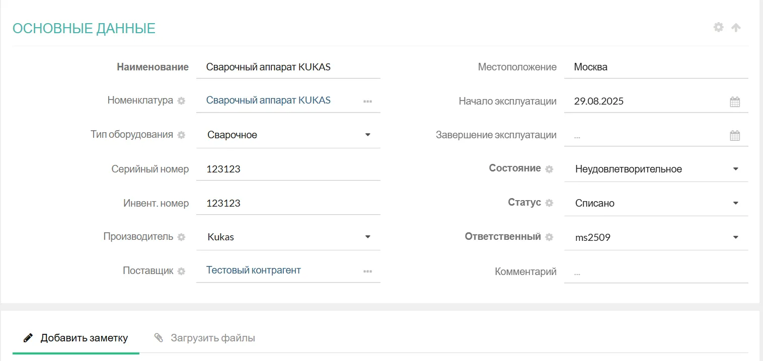 Это единая база всего вашего производственного оборудования, где собрана вся информация — от технических характеристик до гарантийных документов, что помогает эффективно управлять производственными активами и систематизировать информацию — хранить все основные данные в одной карточке: