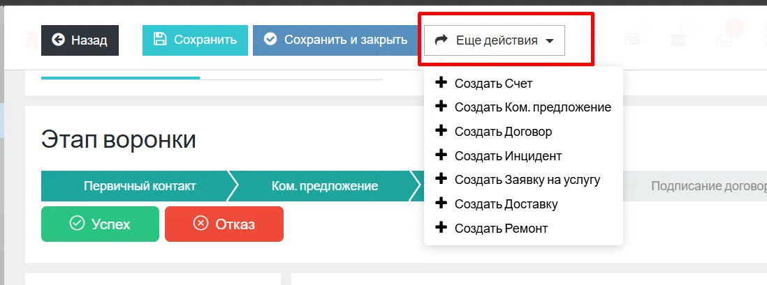 Вы можете создавать документы на основе сделки:
