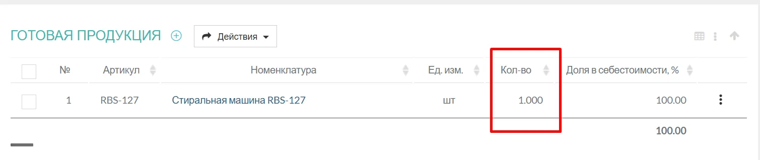 - Один готовый продукт — несколько материалов → одна единица продукции (например, сборка компьютера)
