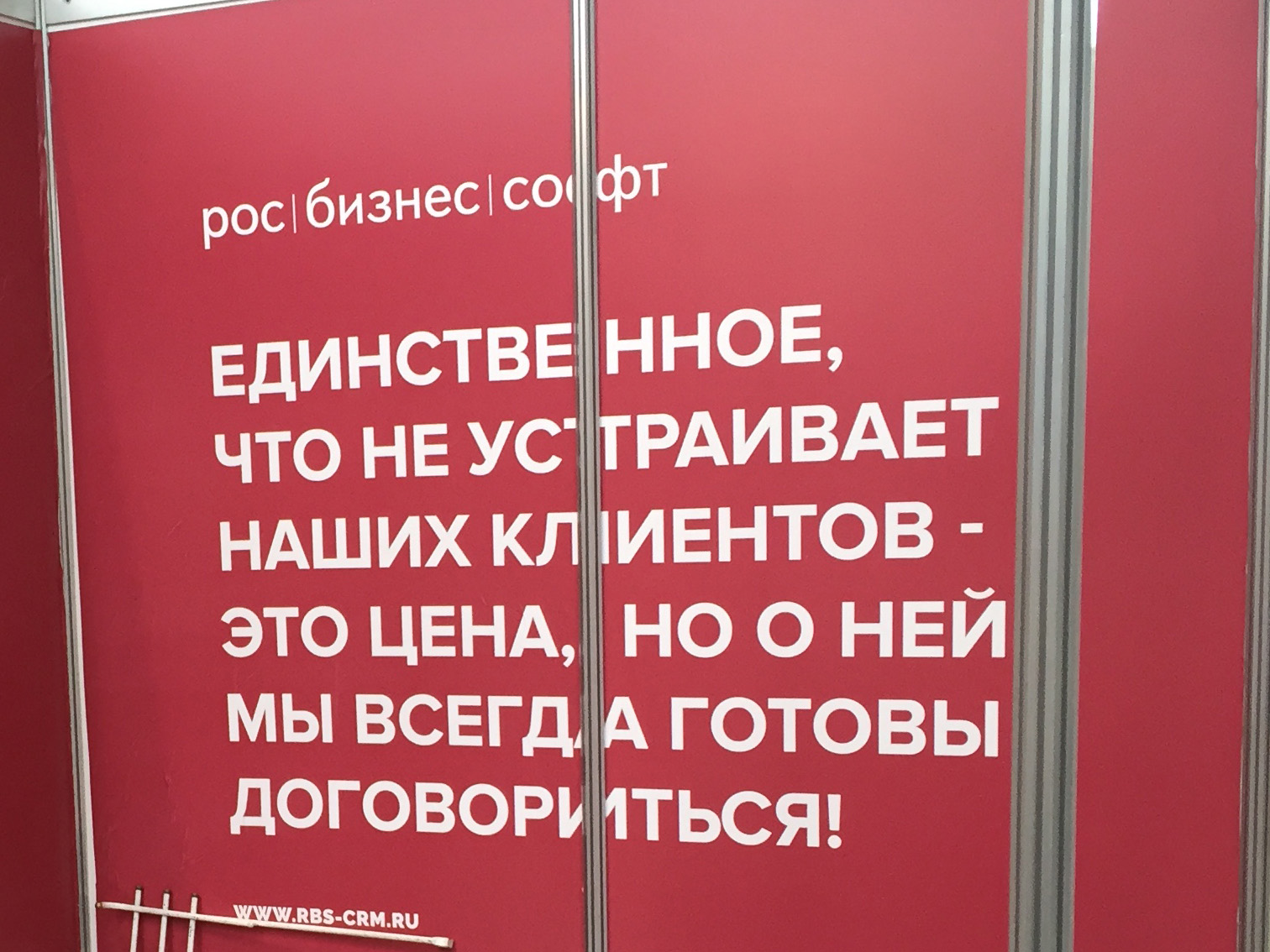 Честно говоря, мы не ожидали такого повышенного интереса к нашей мощной CRM системе, поэтому нам пришлось в срочном порядке уже в первый день привозить дополнительные партии буклетов, блокнотов, ручек, а также заказывать новые визитки в типографии. Было весело.