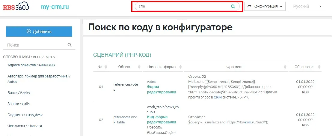 Следующее обновление коснулось модуля «Конфигуратор». Разработчикам стал доступен поиск по всем формам системы, в т.ч. по служебным. Добавлена также возможность редактирования служебных форм, что расширит возможности кастомизации системы, в т.ч. добавления новых типов полей, редактирование базовых шаблонов и т.д.