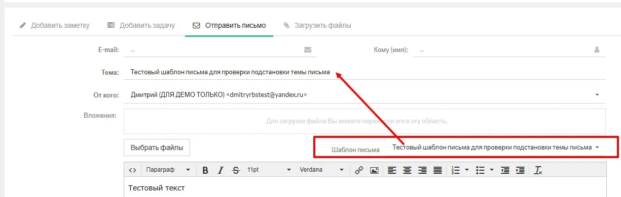 Умные шаблоны писем. При создании нового письма с использованием «Шаблона письма» тема письма теперь автоматически подставляется из наименования шаблона. Это значительно сэкономит время пользователей.